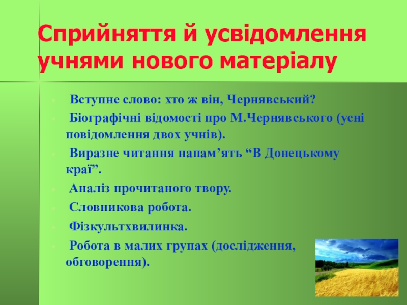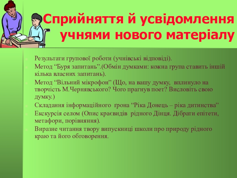 Слайд 10Сприйняття й усвідомлення учнями нового матеріалу