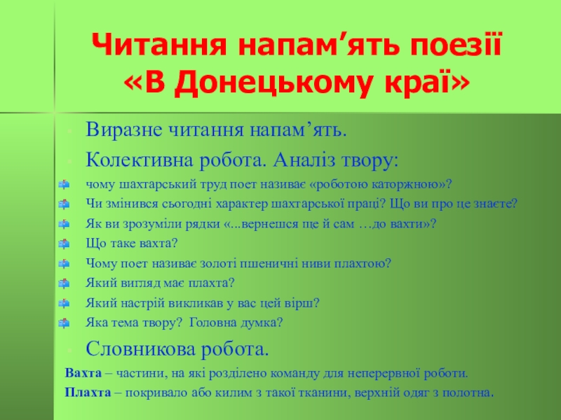М.Ф.Чернявського, у якому показано мальовничі краєвиди Донбасу, любов до рідної землі;