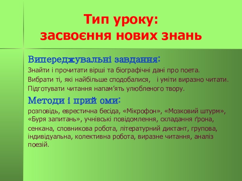 коротко ознайомити учнів з біографічними даними та з поетичним доробком