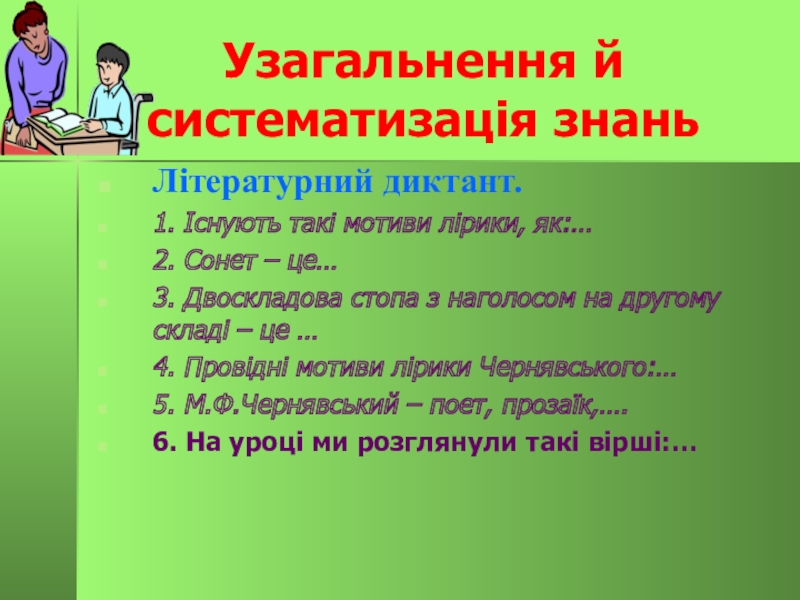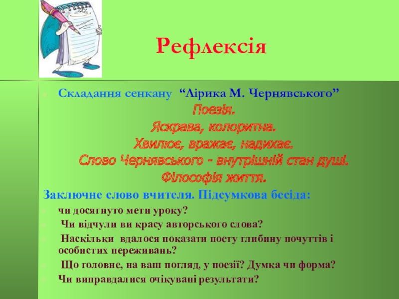 в поезіях М.Чернявського” або відгук на одну із розглянутих поезій (на вибір учня),