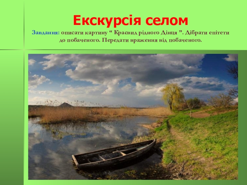 Екскурсія селом (Опис краєвидів рідного Дінця. Дібрати епітети, метафори, порівняння).