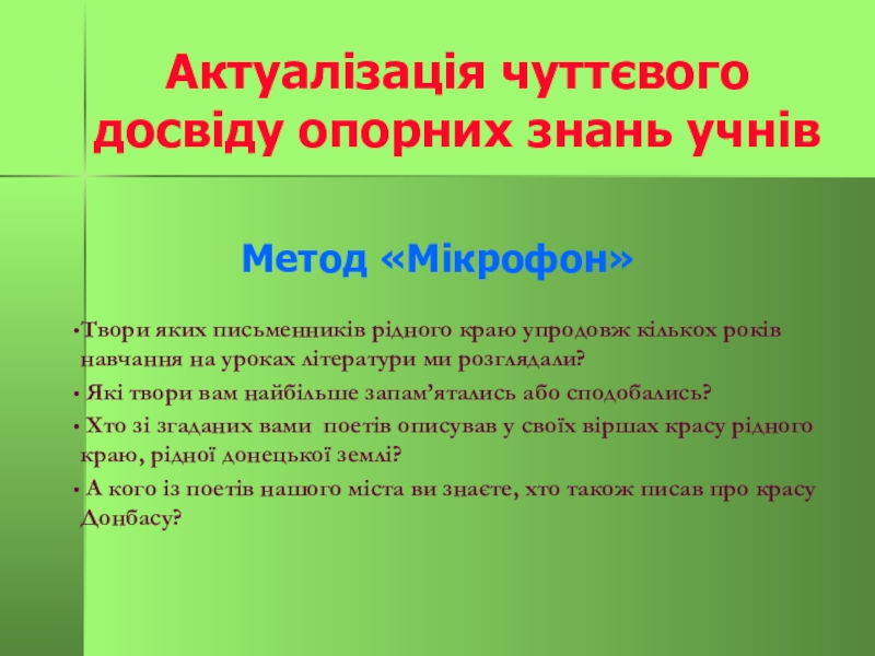 Слайд 8Актуалізація чуттєвого досвіду опорних знань учнів