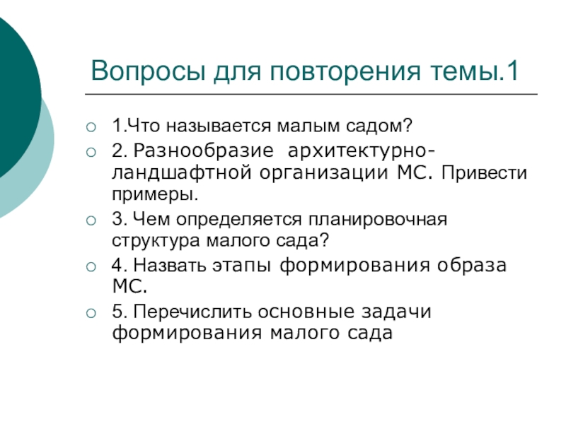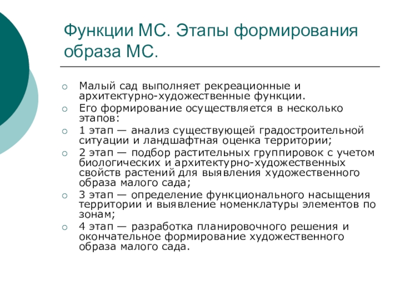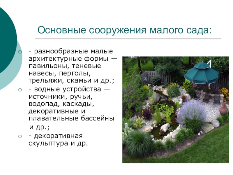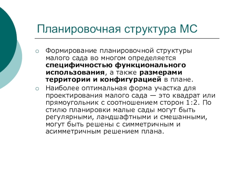 Формирование планировочной структуры малого сада во многом определяется специфичностью