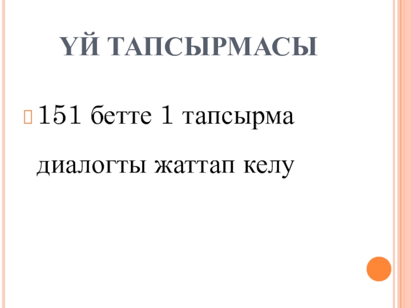ҮЙ ТАПСЫРМАСЫ151 бетте 1 тапсырма диалогты жаттап келу