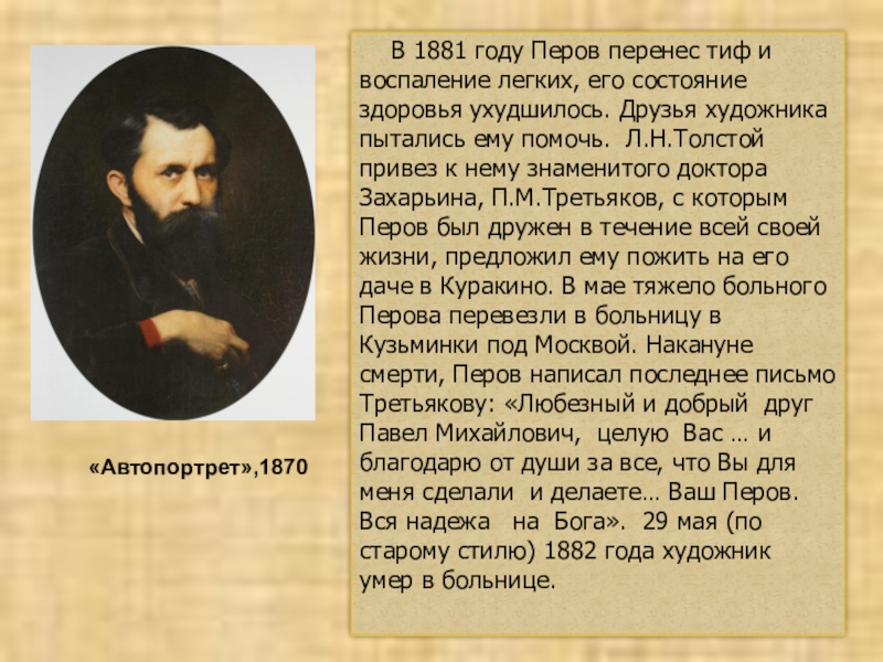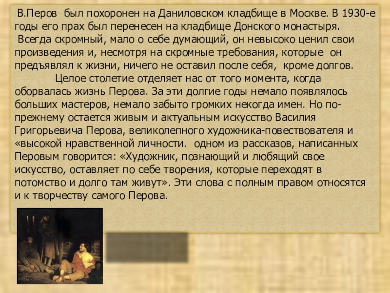 Перов - один из лучших русских живописцев новейшего времени, родился в Тобольске 23 декабря 1833 года.