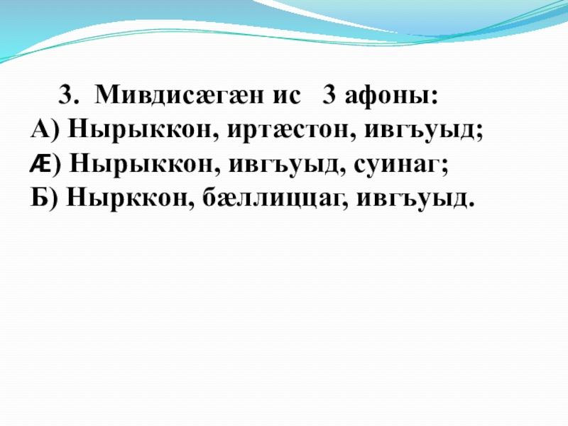 Слайд 6 3. Мивдисӕгӕн ис 3 афоны: