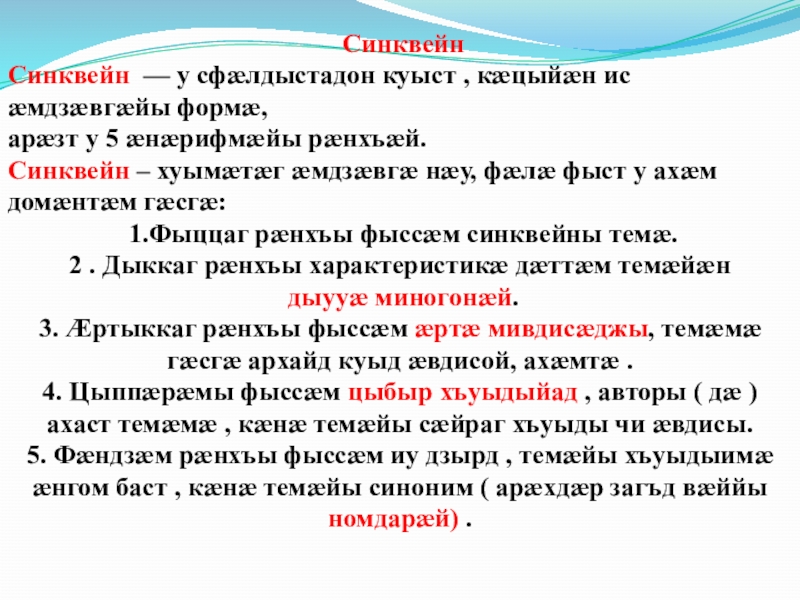 1.Фыццаг рæнхъы фыссæм синквейны темæ.