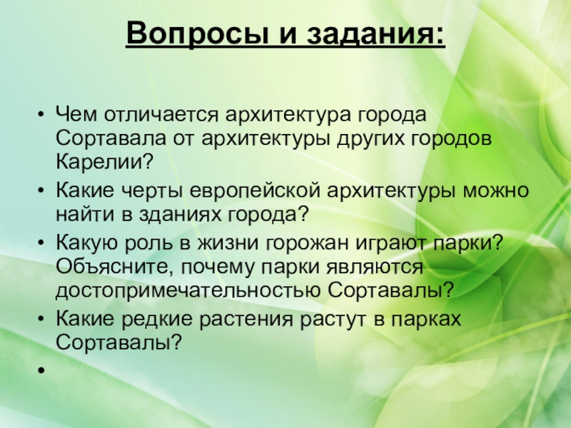 Какую роль в жизни горожан играют парки? Объясните, почему парки являются достопримечательностью Сортавалы?