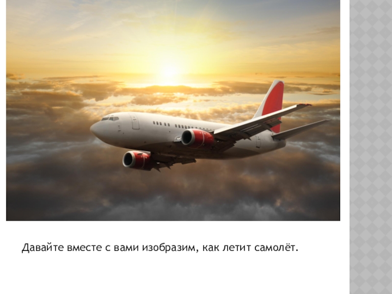 Слайд 5Давайте вместе с вами изобразим, как летит самолёт.