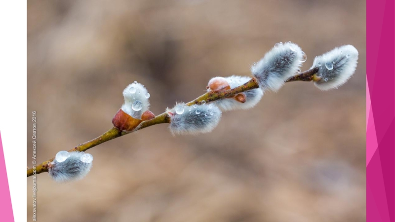 Слайд 4На Руси, как снег растает, и в природе - тишина. Первой верба оживает, безыскусна