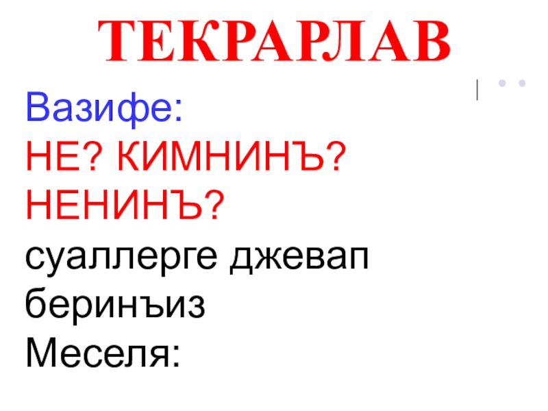 ТЕКРАРЛАВВазифе: НЕ? КИМНИНЪ? НЕНИНЪ?суаллерге джевап беринъизМеселя: