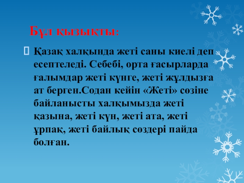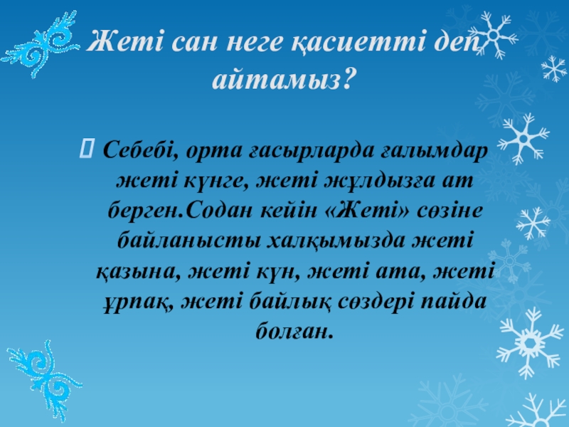 Слайд 16Жеті сан неге қасиетті деп айтамыз?