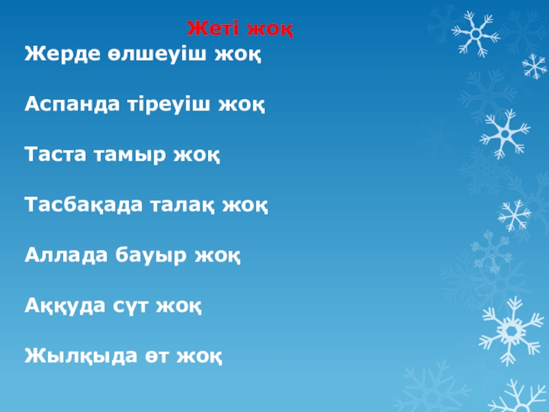Жеті жоқЖерде өлшеуіш жоқАспанда тіреуіш