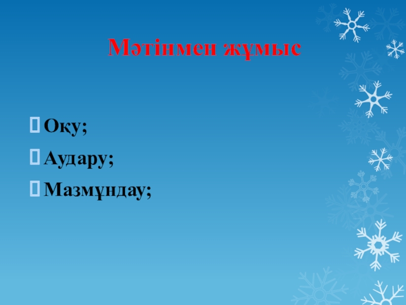 Мәтінмен жұмыс Оқу;Аудару;Мазмұндау;