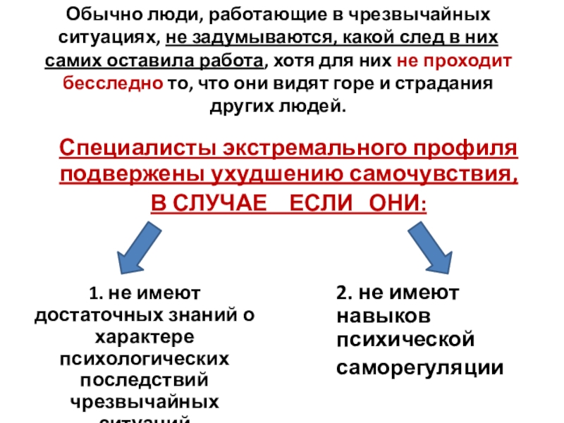 1. не имеют достаточных знаний о характере психологических последствий чрезвычайных ситуаций