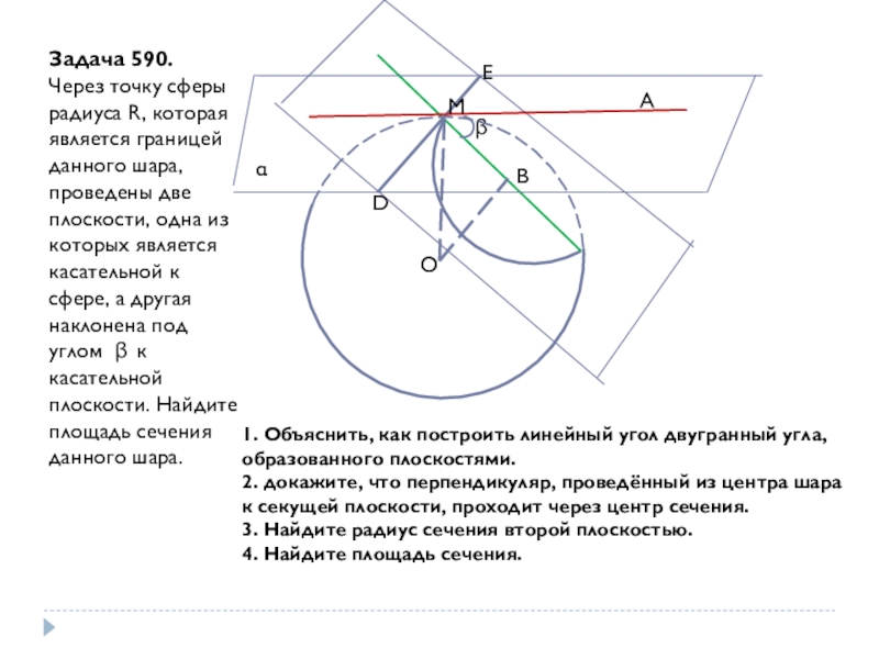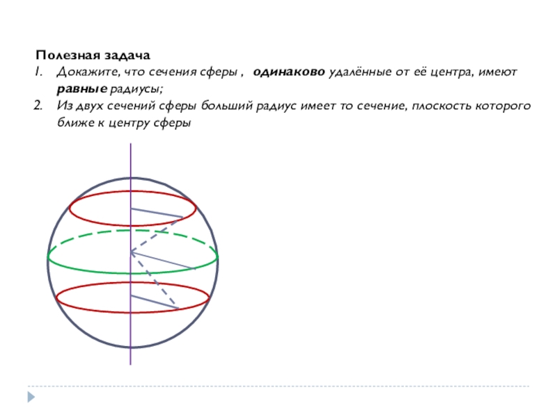 2. докажите, что перпендикуляр, проведённый из центра шара к секущей плоскости, проходит через центр сечения.