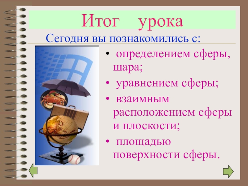 Сфера – тело полученное в результате вращения полуокруж-ности вокруг её диаметра.