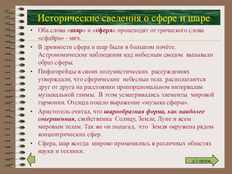 D – диаметр сферы – отрезок, соединяющий любые 2 точки сферы и проходящий через центр.