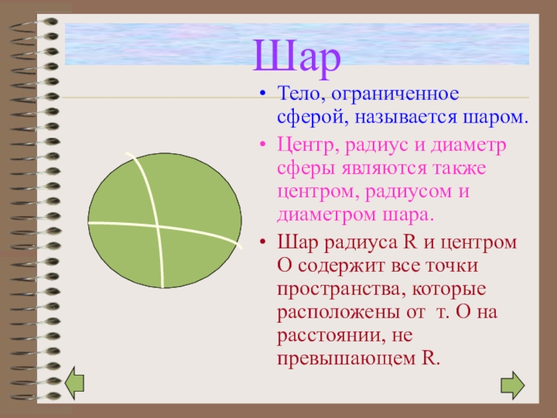 R – радиус сферы – отрезок, соединяющий любую точку сферы с центром.