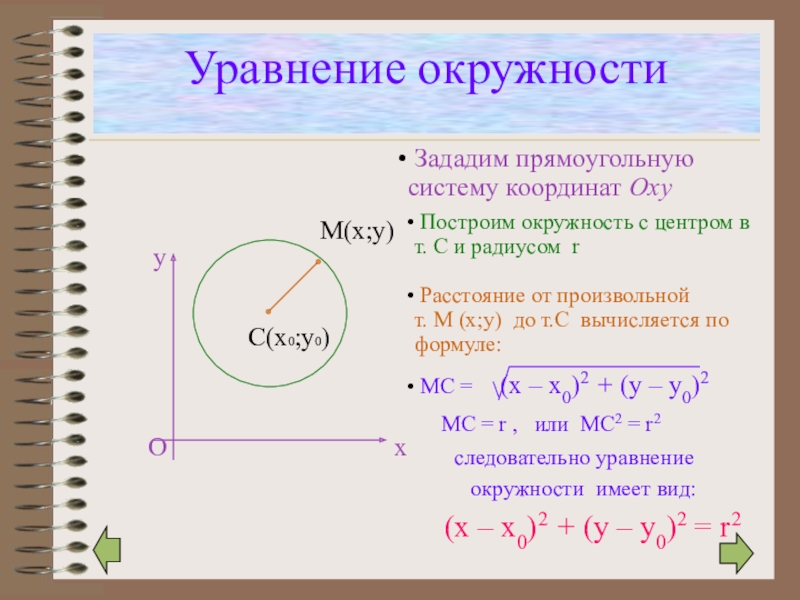 Расстояние от произвольной т. М (х;у) до т.С вычисляется по формуле: