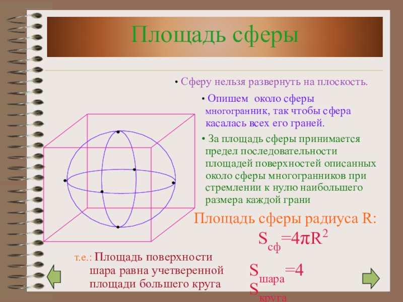 За площадь сферы принимается предел последовательности площадей поверхностей описанных около сферы многогранников при стремлении к нулю наибольшего размера каждой грани