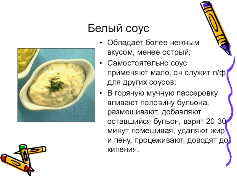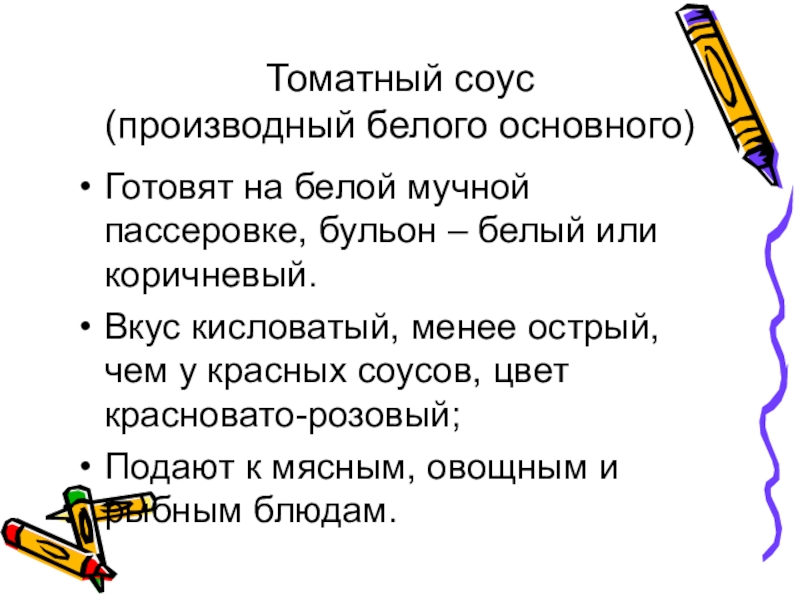 Вкус красных соусов кисло-сладкий, белых – выраженных основных продуктов;