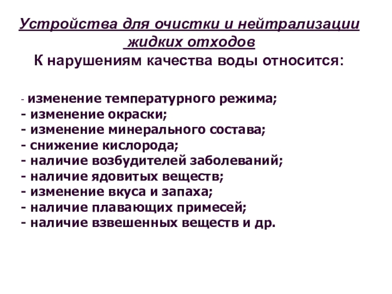 К нарушениям качества воды относится:
