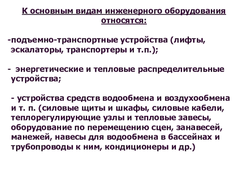 Слайд 11К основным видам инженерного оборудования относятся: