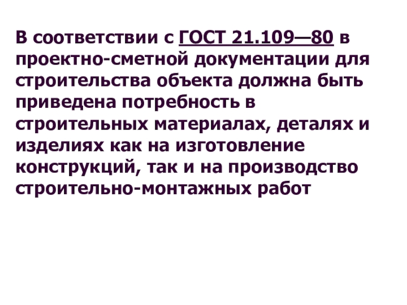 Слайд 22В соответствии с ГОСТ 21.109—80 в проектно-сметной документации для строительства объекта
