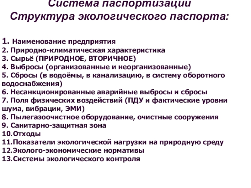 Структура экологического паспорта: