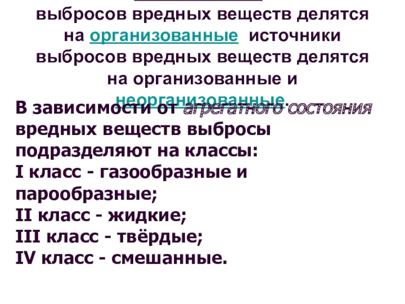 выбросов вредных веществ делятся на организованные и неорганизованные.