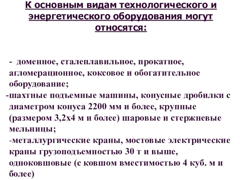 Слайд 8К основным видам технологического и энергетического оборудования могут относятся: