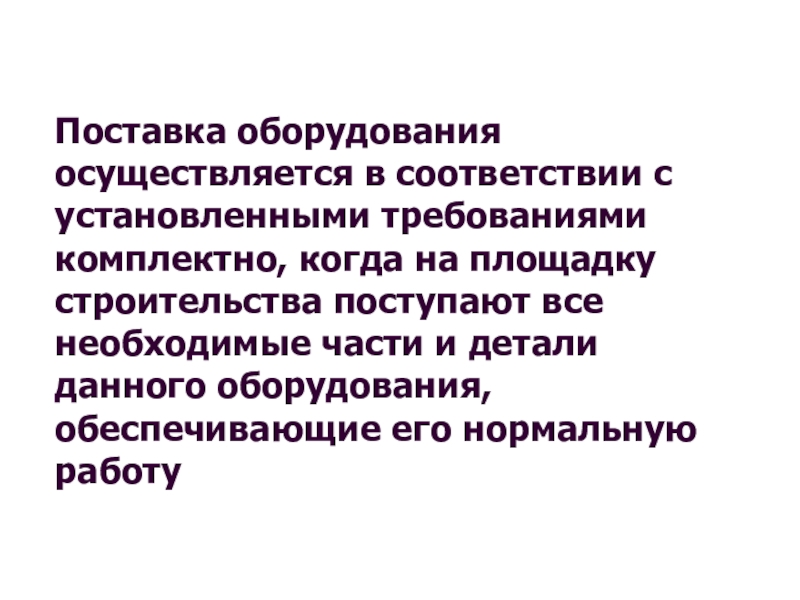 Слайд 14Поставка оборудования осуществляется в соответствии с установленными требованиями комплектно, когда на