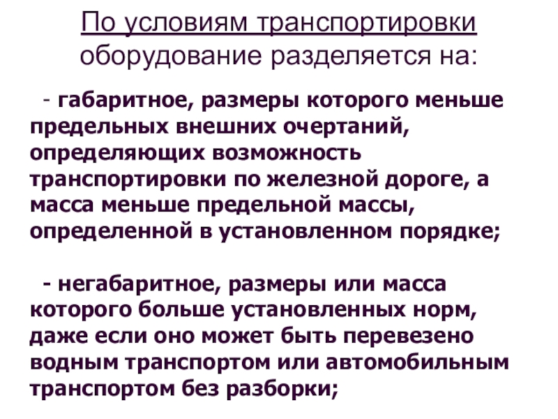 Слайд 15По условиям транспортировки оборудование разделяется на: