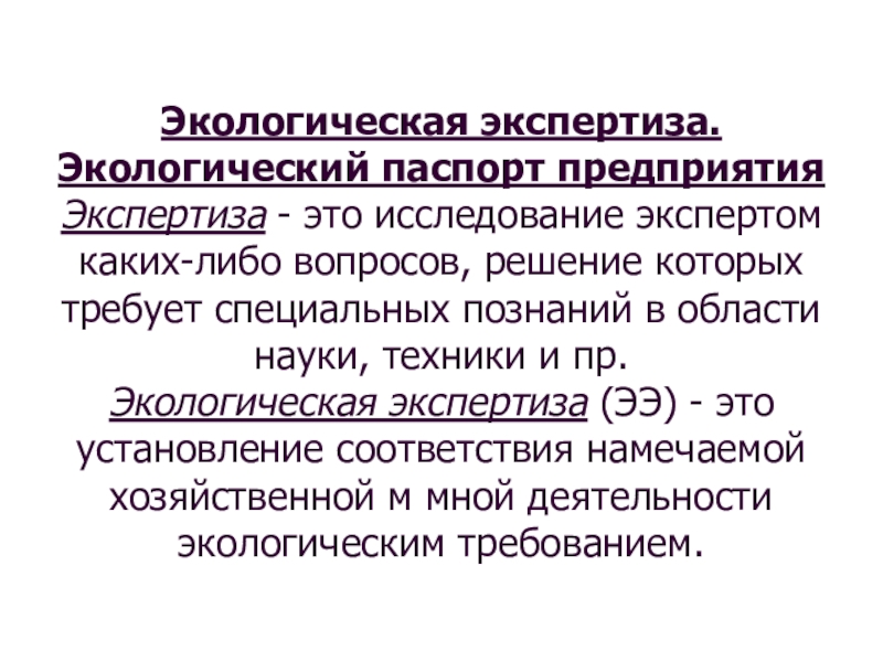 Слайд 36Экологическая экспертиза. Экологический паспорт предприятия