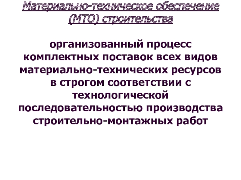 Слайд 19Материально-техническое обеспечение (МТО) строительства