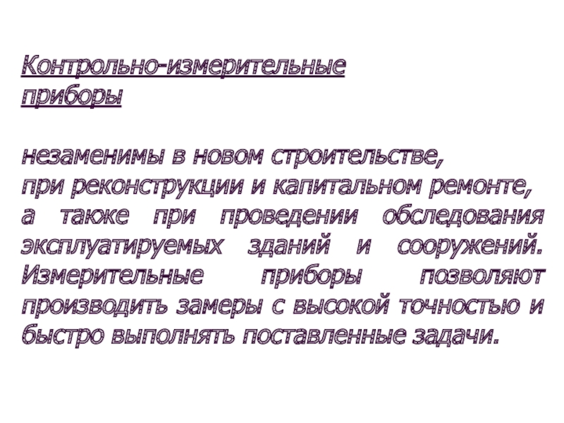 а также при проведении обследования эксплуатируемых зданий и сооружений. Измерительные приборы позволяют производить замеры с высокой точностью и быстро выполнять поставленные задачи.