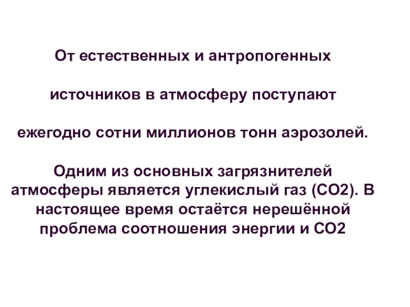 атмосферы является углекислый газ (СО2). В настоящее время остаётся нерешённой проблема соотношения энергии и СО2
