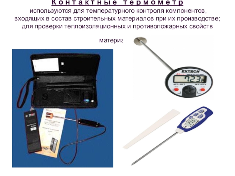 используются для температурного контроля компонентов, входящих в состав строительных материалов при их производстве; для проверки теплоизоляционных и противопожарных свойств материалов