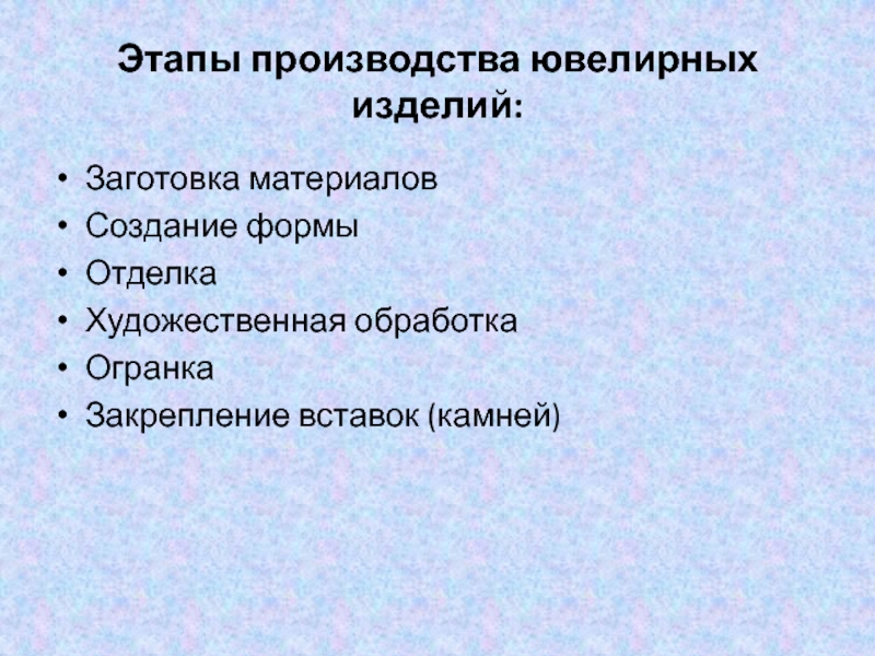 В содержании лекции включены вопросы формирования потребительских свойств ювелирных изделий в процессе производства ( сырье и производство изделий), классификация и характеристика ассортимента ювелирных изделий, требования к качеству, маркировка и клеймение ювелирных изделий.
