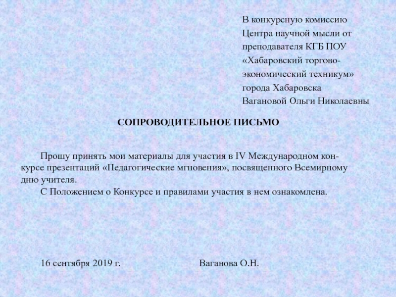 СОПРОВОДИТЕЛЬНОЕ ПИСЬМО