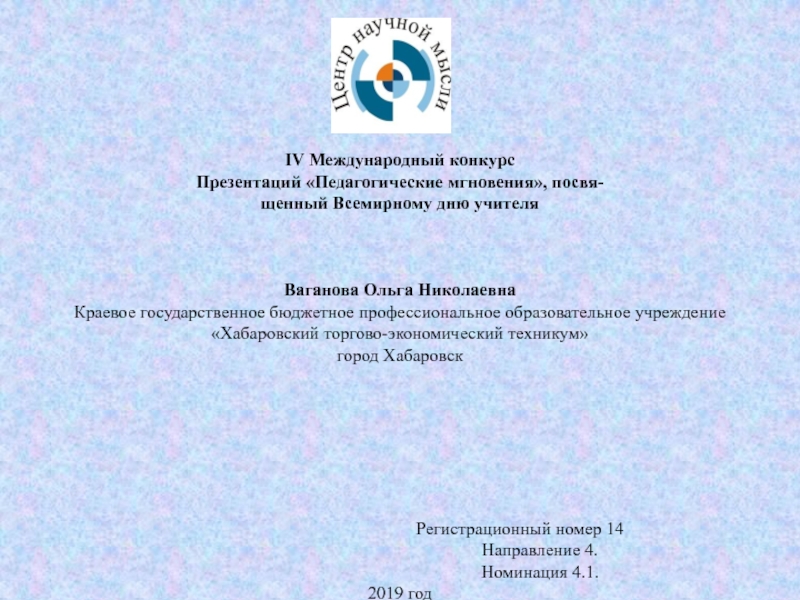 преподавателя КГБ ПОУ «Хабаровский торгово-экономический