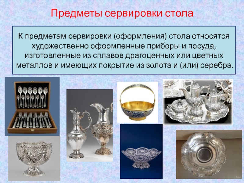 К предметам сервировки (оформления) стола относятся художественно оформленные приборы