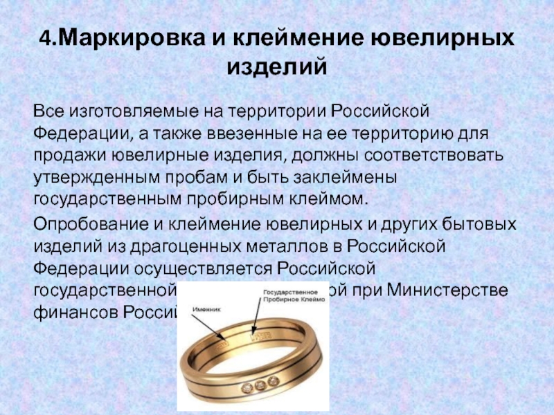 Слайд 344.Маркировка и клеймение ювелирных изделий