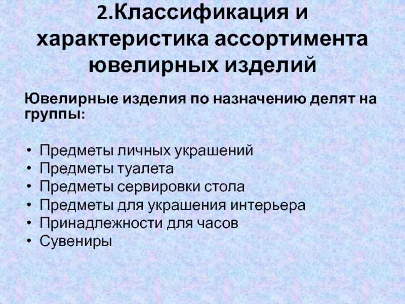 2.Классификация и характеристика ассортимента ювелирных изделий
