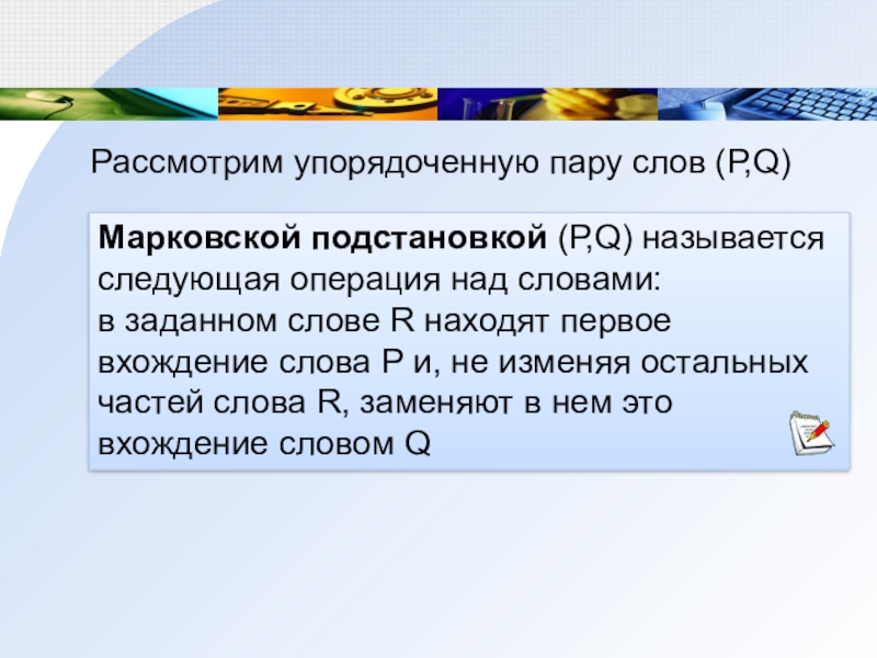 Рассмотрим упорядоченную пару слов (Р,Q)