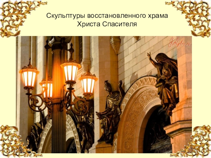 Слайд 20Скульптуры восстановленного храма Христа Спасителя