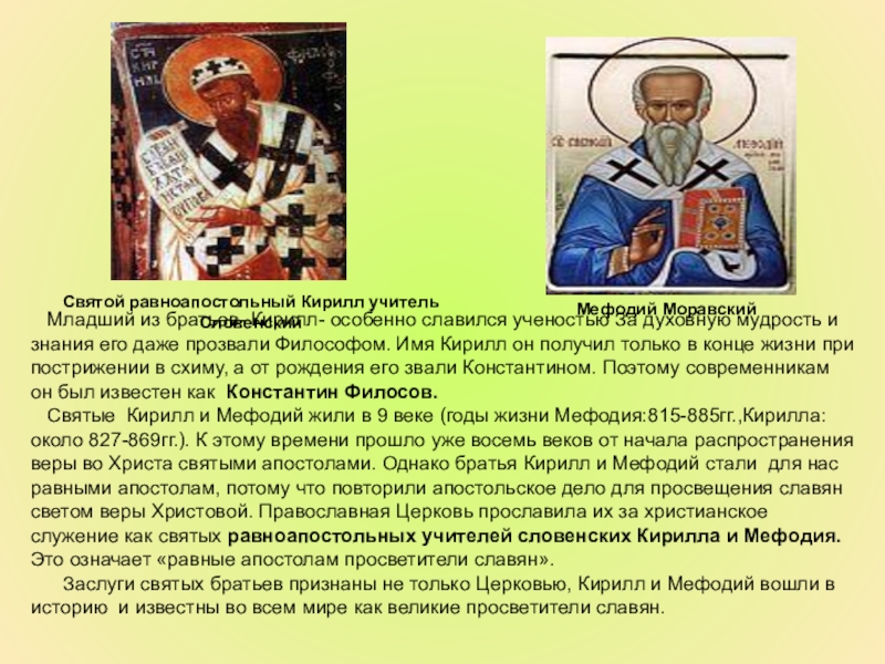 Кирилл и Мефодий Равноапостольные Первоучители Словенские.