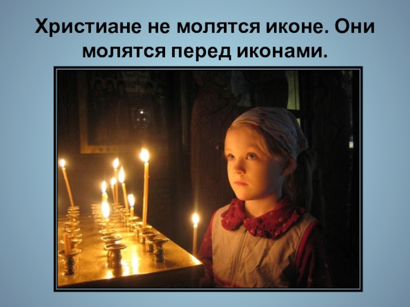 Слайд 19Христиане не молятся иконе. Они молятся перед иконами.