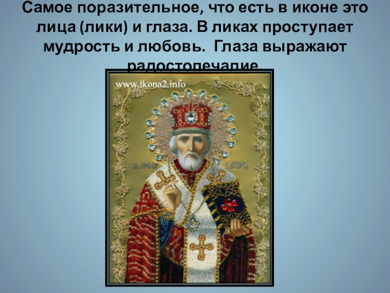 Слайд 18Самое поразительное, что есть в иконе это лица (лики) и глаза.